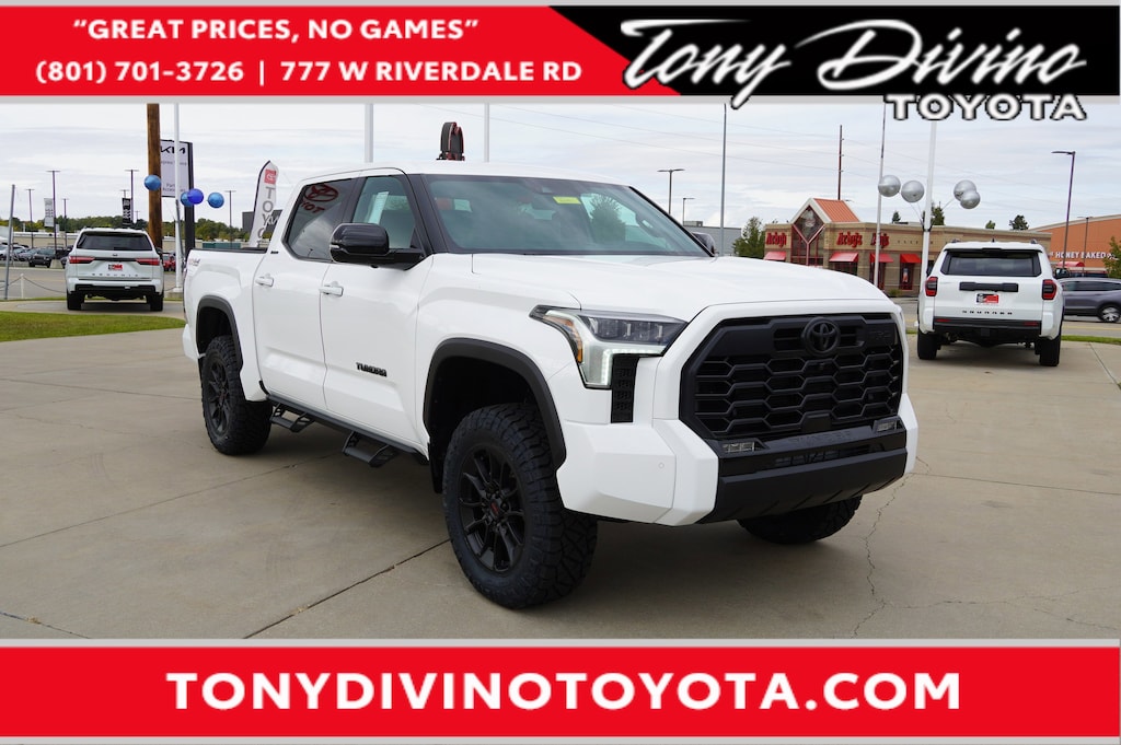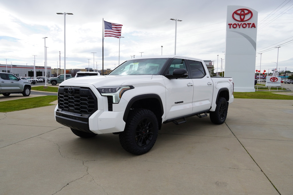 This Tundra has an upgrade package, including Rough Country 3.5" lift, 34.5" Ridge Grappler Tires & Predator Steps ($5,650 package) This Toyota Tundra 4WD delivers a Twin Turbo Regular Unleaded V-6 3.4 L/210 engine powering this Automatic transmission. TRD OFF-ROAD PACKAGE -inc: TRD grille, TRD off-road suspension, skid plates, mud guards, TRD leather shift knob, electronic rear differential lock and Multi-Terrain Select (MTS), Wheels: 20 TRD Alloy, Tires: 265/60R20 All-Terrain, Multi-Terrain Back Monitor, PREMIUM PACKAGE -inc: Towing Package, High Grade Full LED Headlamp, OFFROAD FRONT SKID PLATE -inc: TRD under body protector.
